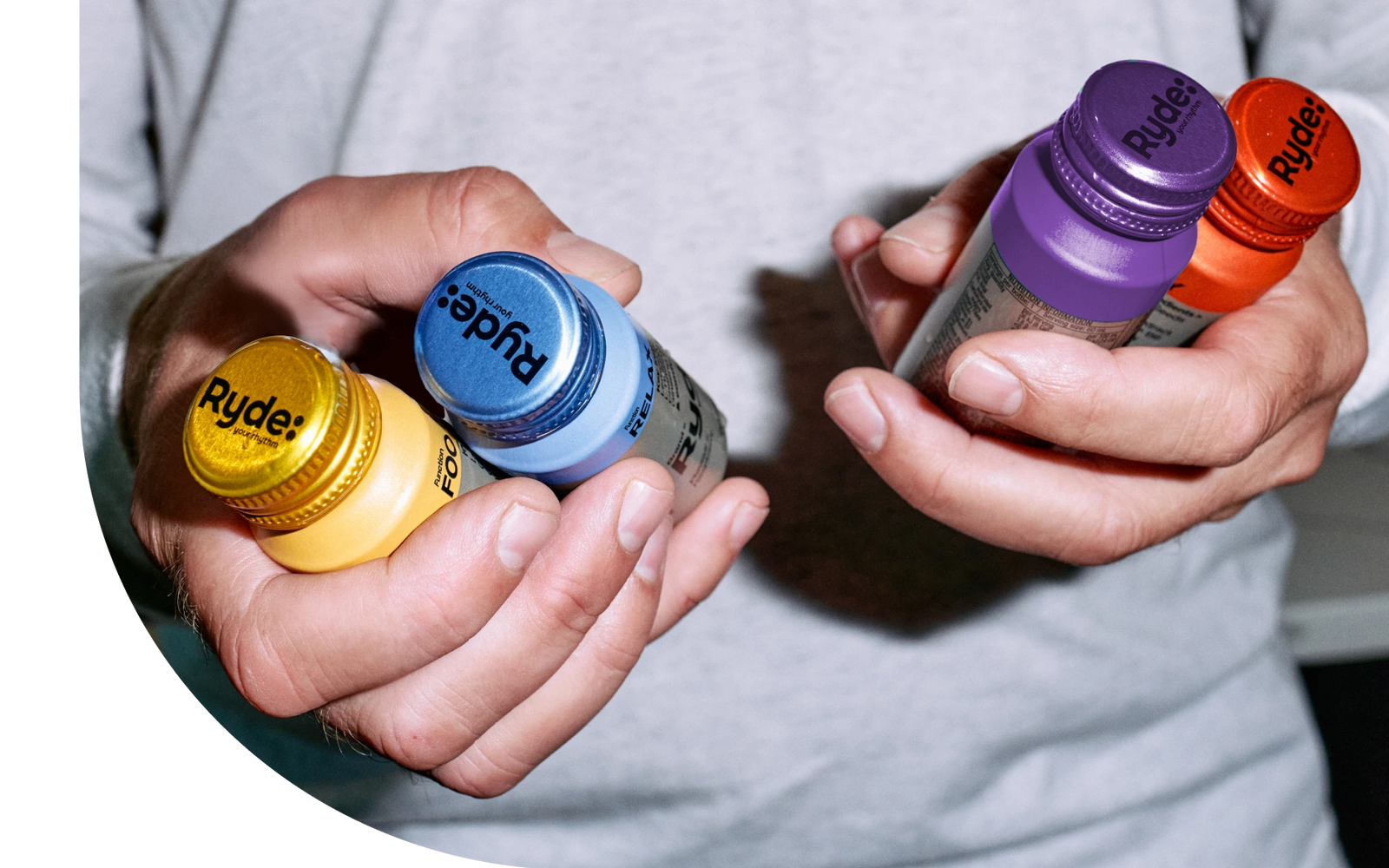 Ryde: ENERGIZE, FOCUS, RELAX and SLEEP are tested under the Informed Choice program, meaning they're verified to be tested for 285+ banned substances.