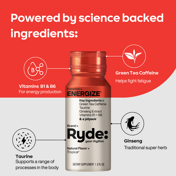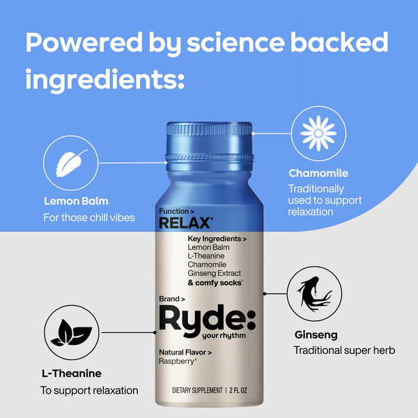 *These statements have not been evaluated by the Food and Drug Administration. This product is not intended to diagnose, treat, cure, or prevent any disease. Ryde: Sleep is for occasional short-term use only. When used, do not consume more than one shot per day.