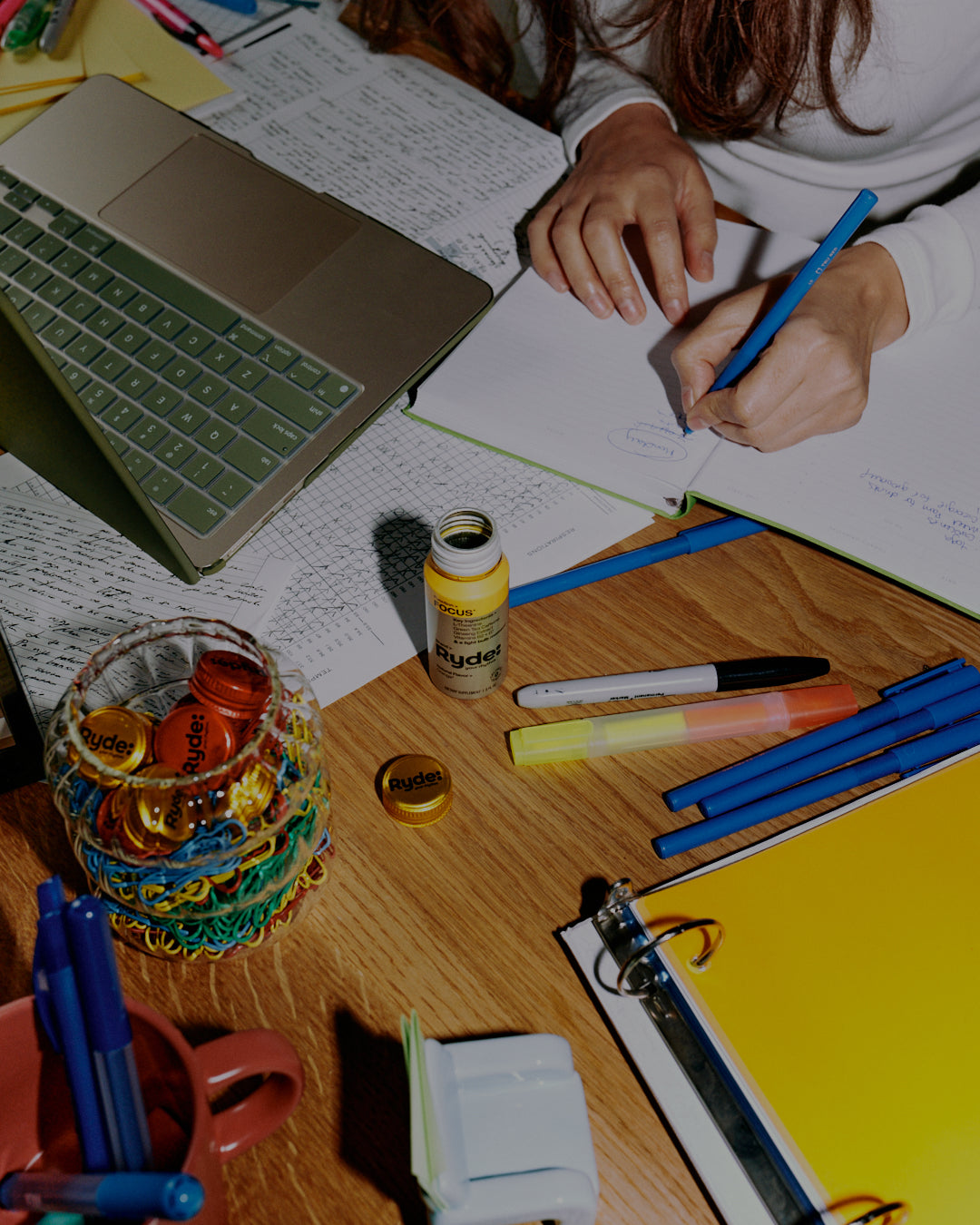 Ryde: FOCUS includes our smartly formulated combination of ingredients including L-theanine, Green Tea Caffeine, Ginseng Extract and Vitamins B2 & B7 – designed to help you focus right when you need to.*